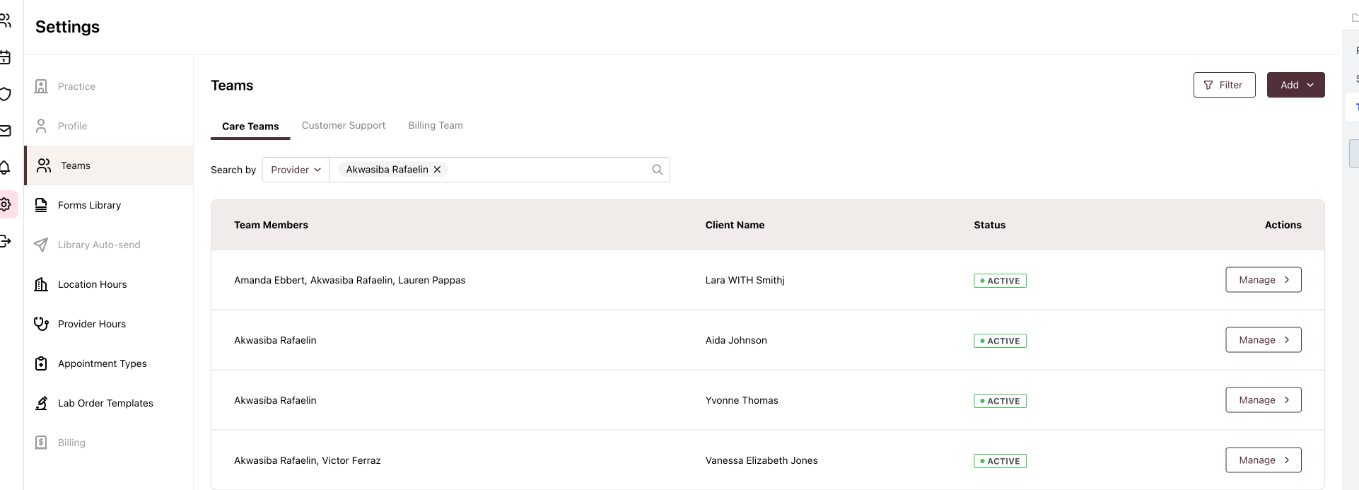 Purpose - Teams allow a practice to organize communication and assign responsibilities more effectively. By creating and managing teams (e.g., Care Teams, Customer Support, Billing Team), messages and tasks can be routed to the right group, ensuring timely responses and streamlined workflows.