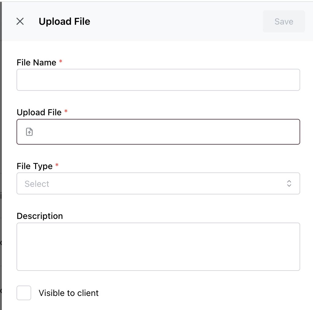 - Check Visible to client if you want the client to see the file (Optional)